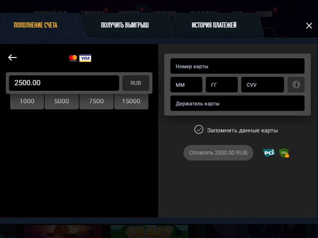 Вулкан казино - вход и регистрация для пополнения депозита с карты Виза