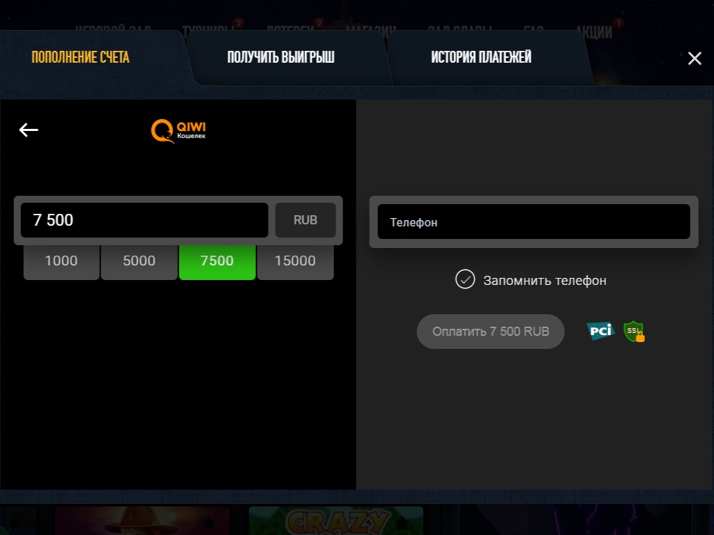 Зеркало Vulkan: вывод выигранных средств на карту Сбербанка или кошелек Киви