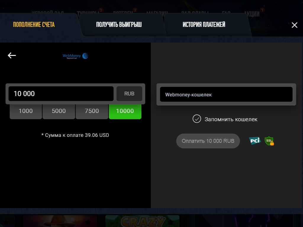 Также стоит отметить, что в на новом сайте и зеркале Vulkan casino можно играть в игровые аппараты на рубли с пополнением через Вебмани и Киви, а также использовать эти кошельки для быстрого вывода средств. Среди самых актуальных платежных систем можно отметить: